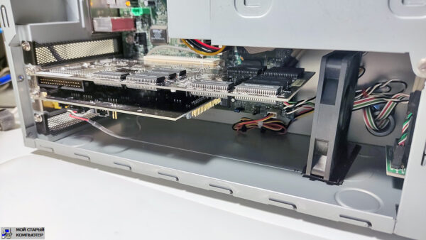 На фото может показаться, что шлейф IDE перекрывает поток воздуха, но это не так. Он прижат к стенке корпуса.