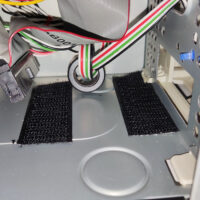 - Переставил вентилятор, который был установлен под БП вниз. Он отлично влез между IDE-SD и CD-ROM. Дополнительно я зафиксировал его липучкой. Теперь он обдувает сбоку как раз Voodoo.