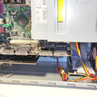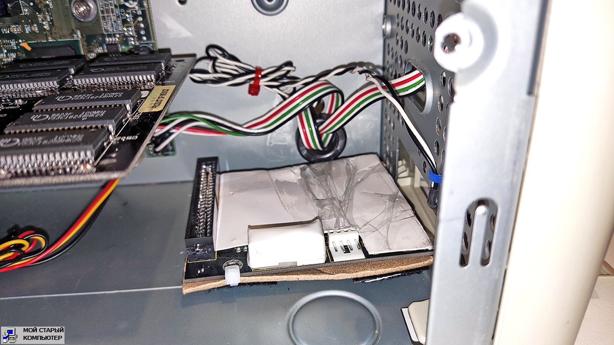 На фото может показаться, что шлейф IDE перекрывает поток воздуха, но это не так. Он прижат к стенке корпуса.
