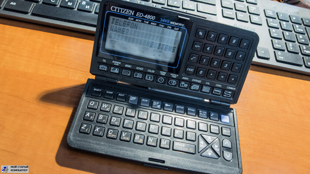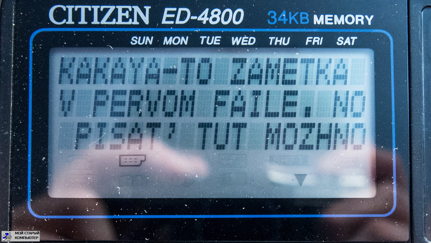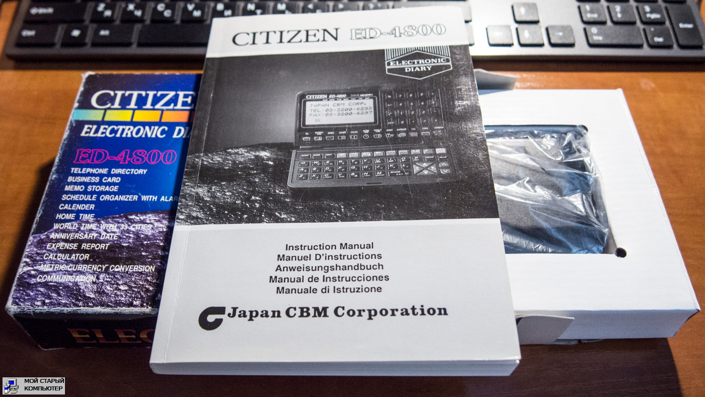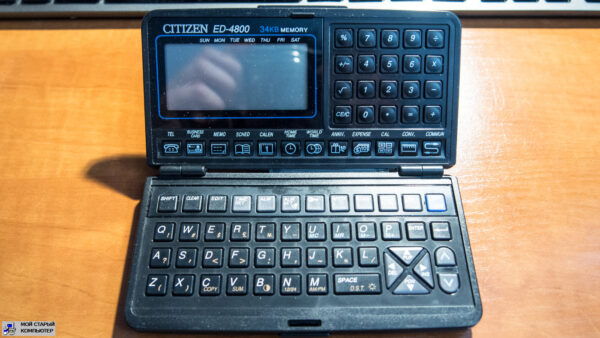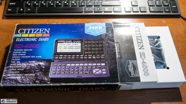 Конечно, современная техника штука хорошая. Приятно, когда в смартфоне, компьютере или планшете скрыта такая мощь, которая когда-то нам и не снилась. Но иногда приятно вернуться и в прошлое. Посмотреть, что было пиком (или типа того) технологий лет 25 назад. Как говорится, когда деревья были большие. Например, герой сегодняшнего ретро-обзора – электронная записная книжка Citizen ED-4800. Это модель 1992 года, а конкретно обозреваемое устройство выпущено 3 октября 1993 года. К слову, появление именно этой модели здесь не случайно. Именно такая же книжка была у меня в середине 90-х годов, а потом она умерла, увы. А точнее впала в кому. Сдох шлейф, который соединял половинки устройства, а так как в верхней части находится процессор, память и прочая начинка, а в нижней были батарейки – думаю очевидно, что мой экземпляр стал непригодным к использованию. Потом у меня появилась другая модель, но она была проще и не такой интересной, как обозреваемый аппарат. Я бы вне себя от радости, когда на Авито нашел рабочий экземпляр за разумные деньги. Впрочем, обо всем по порядку.
