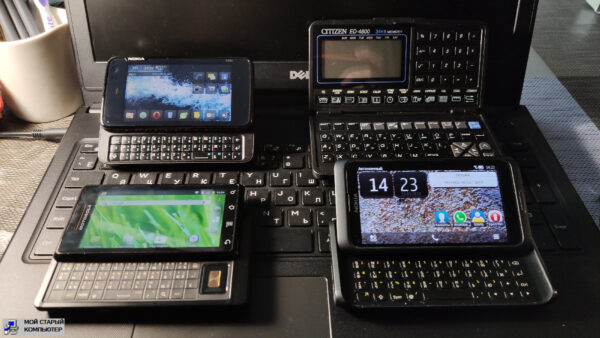P.S. И как бонус — моя коллекция устройств с QWERTY-клавиатурами. Все рабочие. Для Citizen просто нет батареек под рукой.