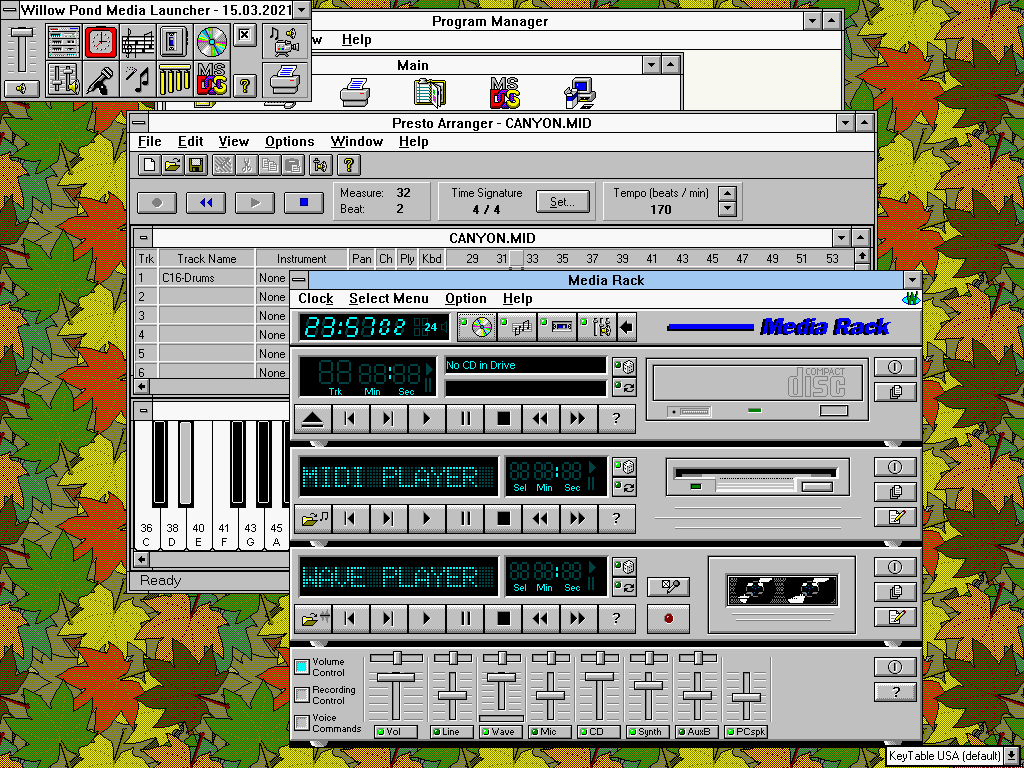Включает MIDI-редактор Presto Arranger, программу записи Wave Shaper и утилиты WinChime, Media Launcher. И, конечно, сам Media Rack.