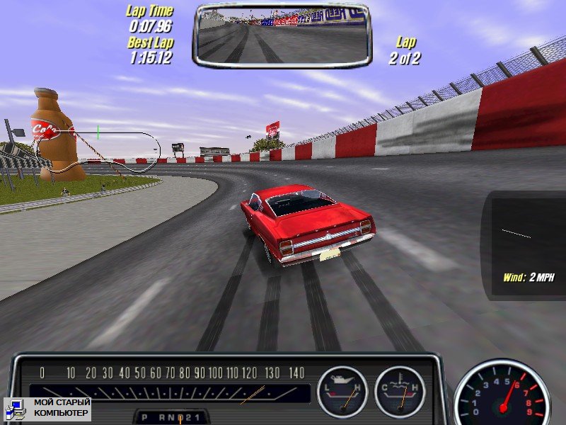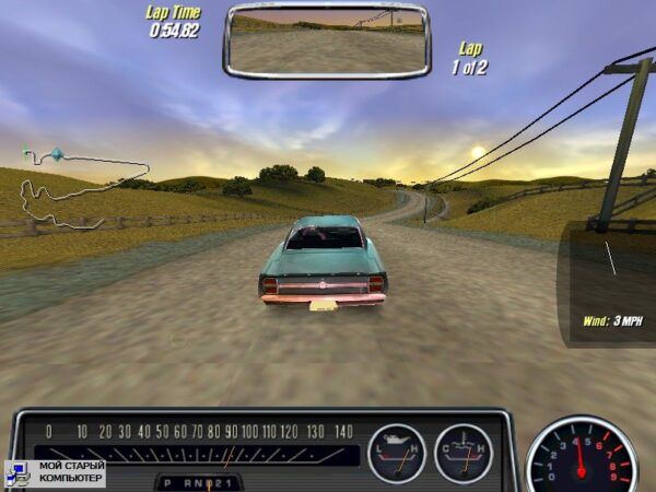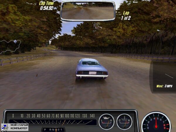 С точки зрения физики игра мне показалась нечто средним между High Stakes и Porsche Unleashed. К тому же, не стоит забывать природу макслкаров. Это не спортивные машины в прямом смысле этого слова, а попытка сделать оные, используя по максимуму комплектующие обычных американские автомобилей. Которые во времена расцвета масклкаров были большие и неповоротливые. Вот автомобили в MCO примерно такие же. Я нашел пару машин, которые управляются относительно хорошо (по-моему, это какой-то Plymouth), но в целом у меня было такое ощущение, что пытаешься оседлать громоздкий шкаф, который хочет ехать быстро, а вот вписаться в очередной поворот не очень. Причем, управлять такими авто непросто как с джойстика, так и с клавиатуры.