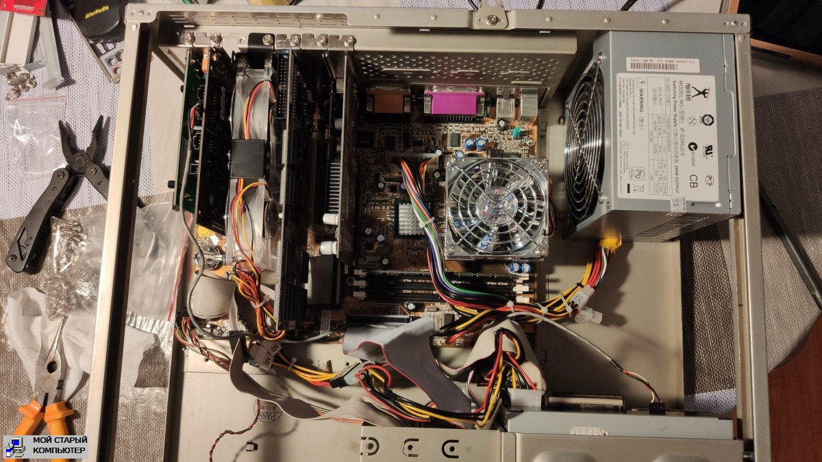 Я данным корпусом очень доволен. Даже несмотря на его нюансы. «Моддинг» в стиле woodgrain PC их немного смягчил и скрыл. Желтизну либо потом ретробрайтом устраню или просто забью на этот момент 🙂 Мой ретро-ПК на процессоре Pentium 3 (видео о нем: 1 и 2) вписался туда идеально. Даже с длинной Voodoo 2 не возникло проблем.