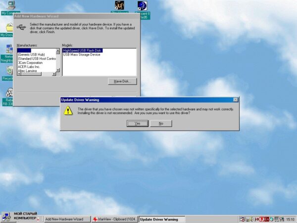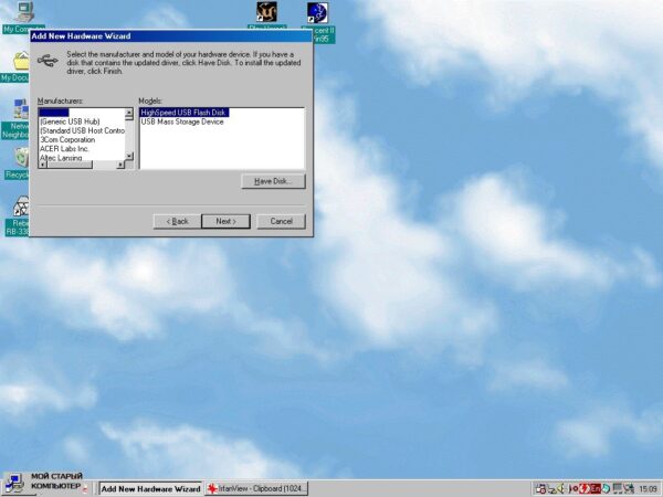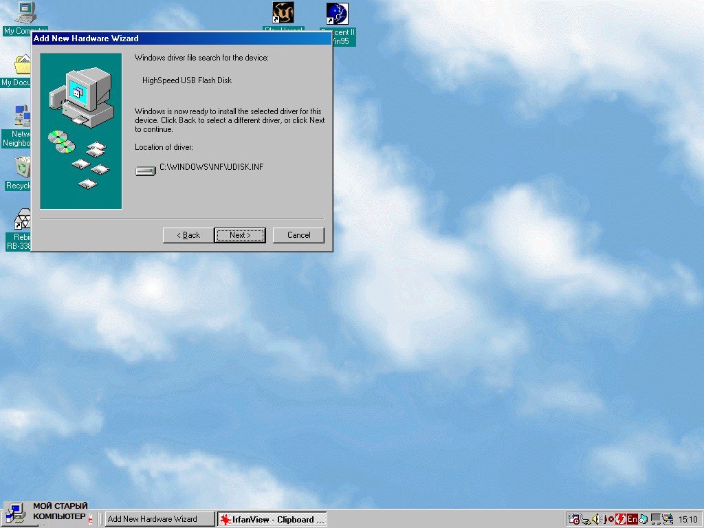 Существует универсальный драйвер для Mass Storage устройств для Windows 98. Он позволяет использовать любую флэшку с таким компьютером без особой возни с драйвером. Почти. Почему так? Потому что, каждый раз когда вы будете подключать в ваш компьютер на Windows 98 новую флэшку, вам надо будет вручную поставить драйвер для нее. Далее, этого делать уже не обязательно, система сама будет подхватывать ваш накопитель.