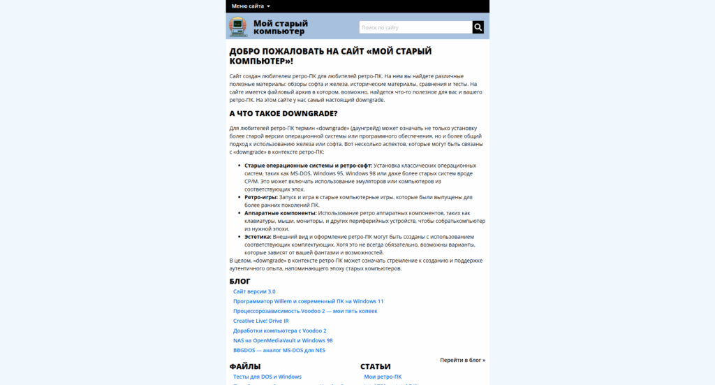 Старый сайт я решил тоже оставить. Все же это творение моего гения (сарказм) по своему интересное, чтобы просто взять и удалить его. Старый сайт перенесён на отдельный домен, он как и раньше будет доступен на ретро-ПК. Но он законсервирован в текущем виде. Добавляться новый контент на него не будет. Все новое будет добавляться на новую версию.